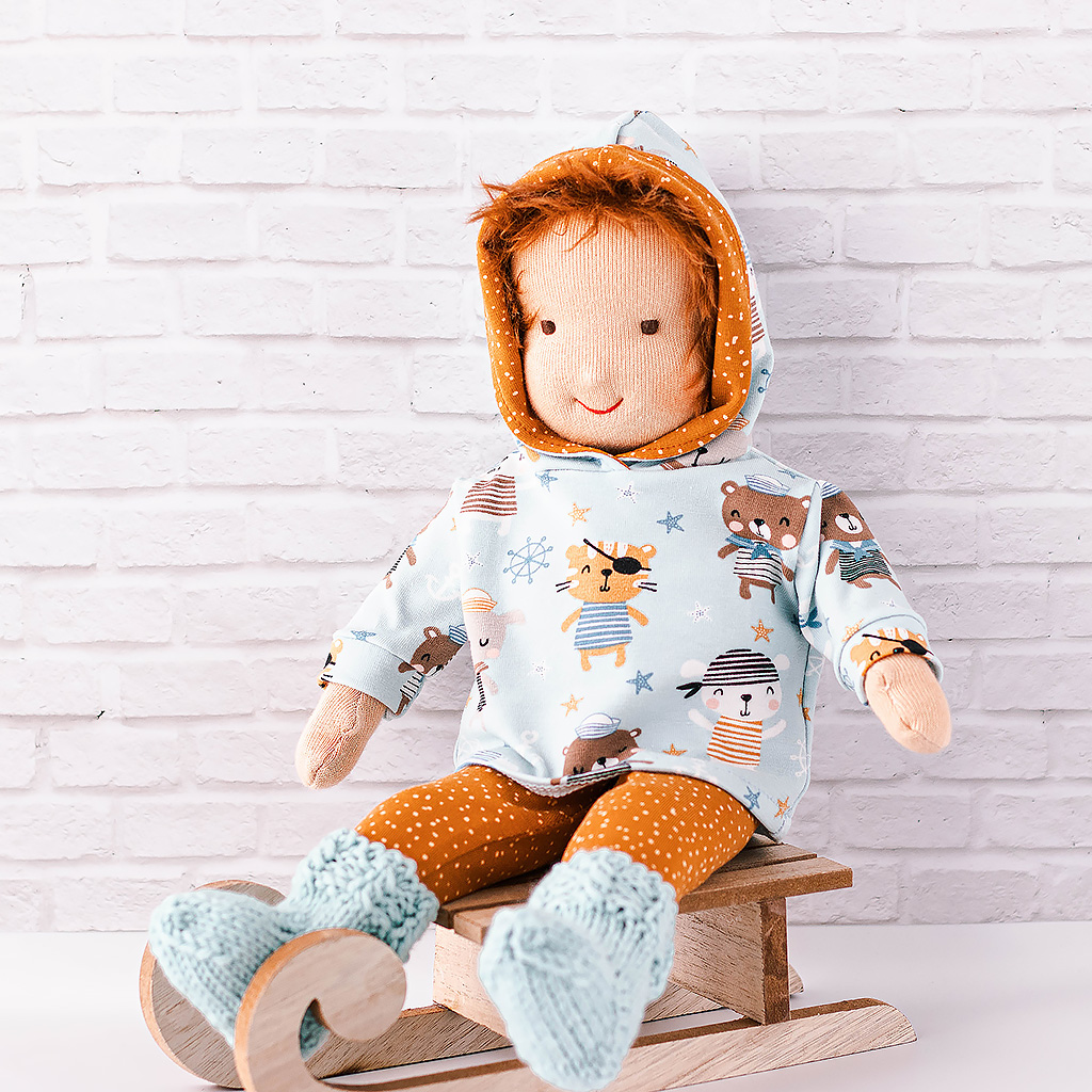 Von Puppenkleidung über Babyschuhe, Söckchen & Neugeborenenmützen bis zu Taschen und Accessoires – gefertigt aus hochwertigen Stoffen und Wolle, die für Kinder geeignet sind.