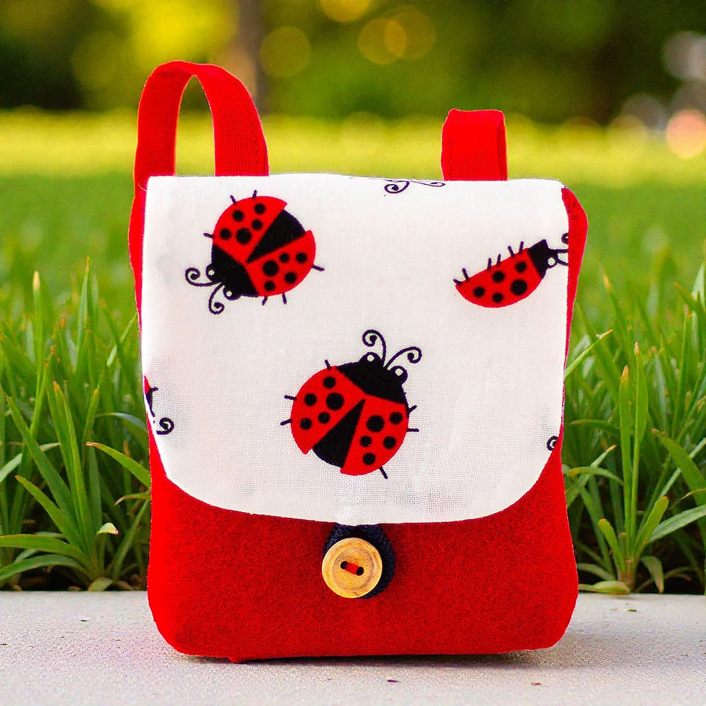Ein Rucksack für Waldorfpuppen aus Wollfilz und Baumwollstoff, der Kinder beim Spielen, Unterwegssein und Geschichtenerfinden begleitet.