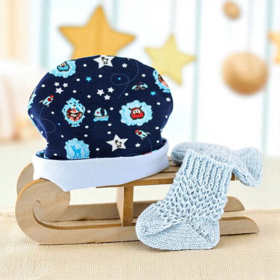 Babyset „Piraten“ – Biojersey-Mütze & handgestrickte Merinosöckchen