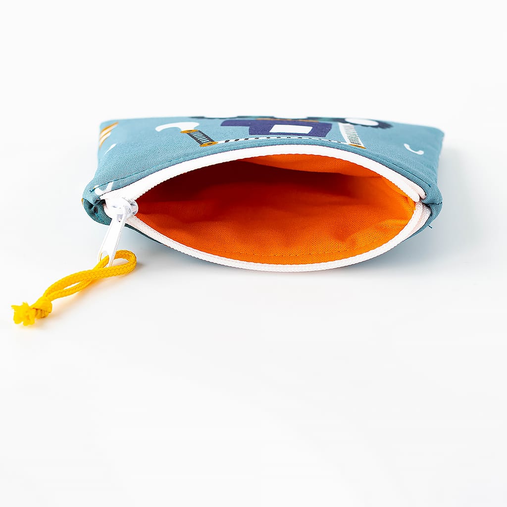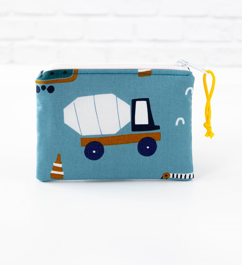Diese handgenähte Kinder-Geldbörse aus Baumwolle begeistert kleine Baustellenfans! Mit coolem Bagger-Motiv, stabilem Reißverschluss und Platz für Münzen oder kleine Schätze.