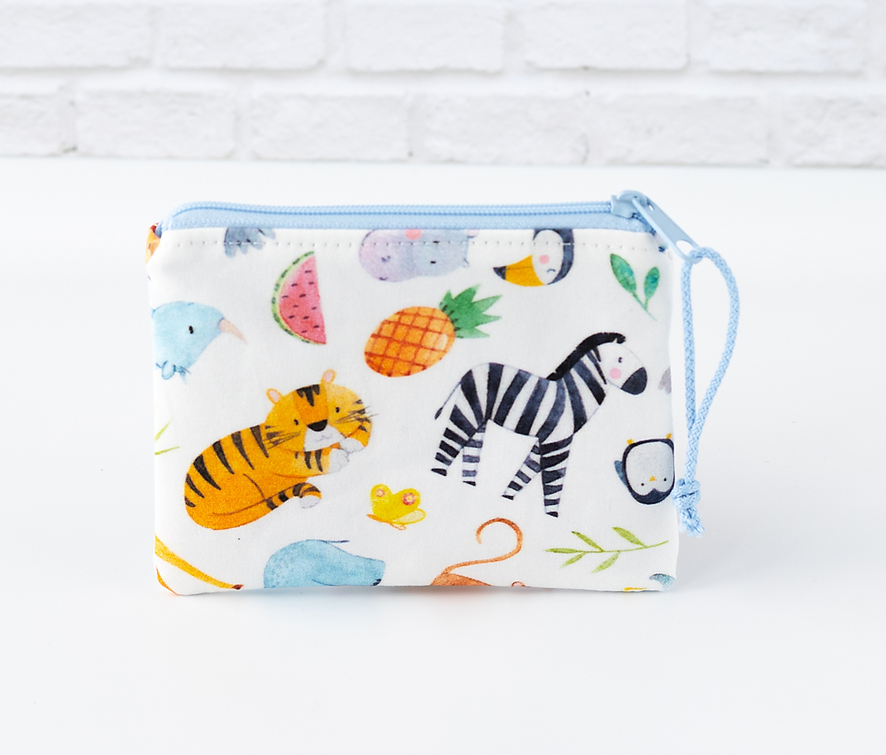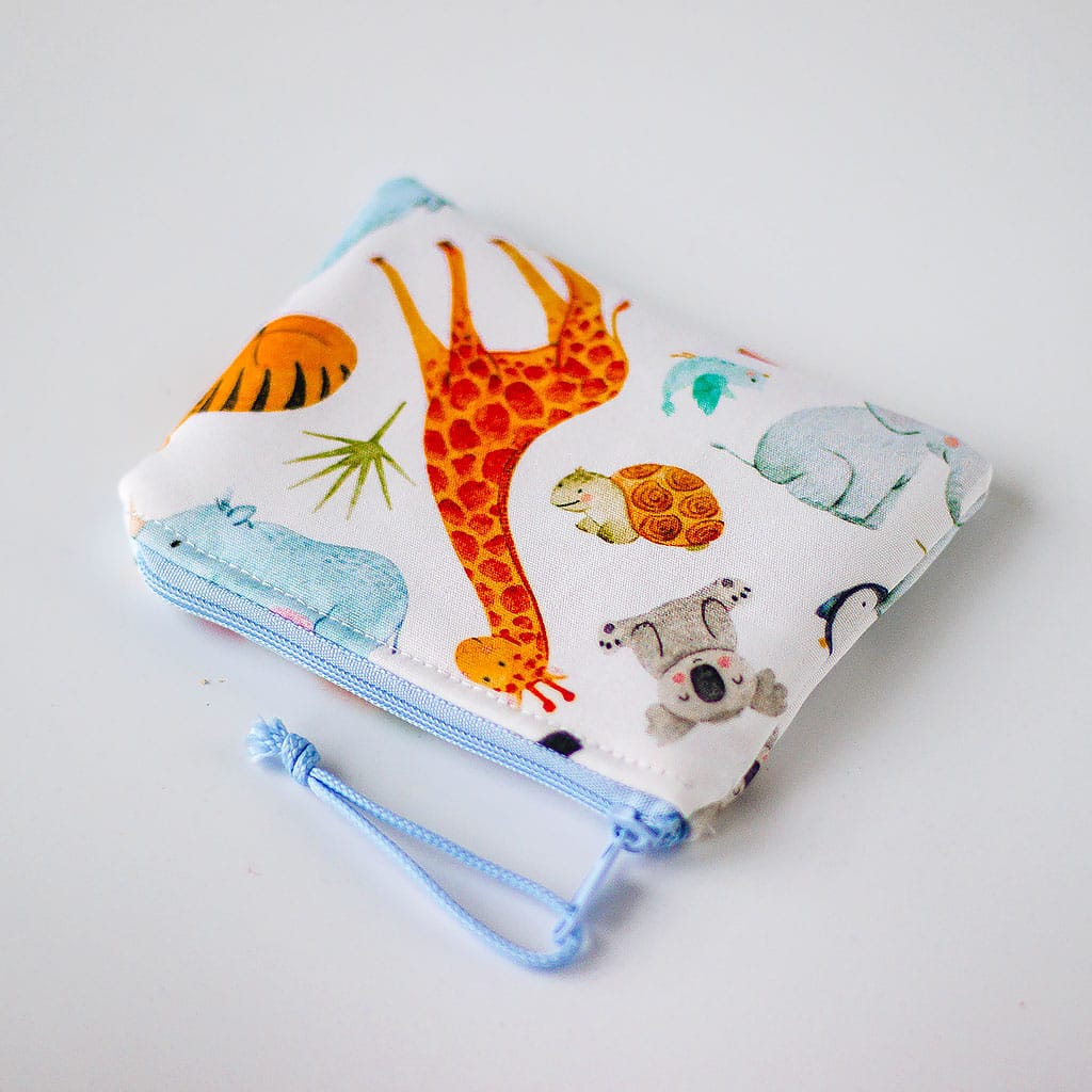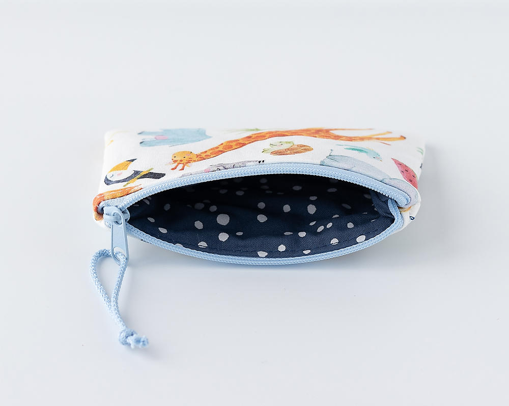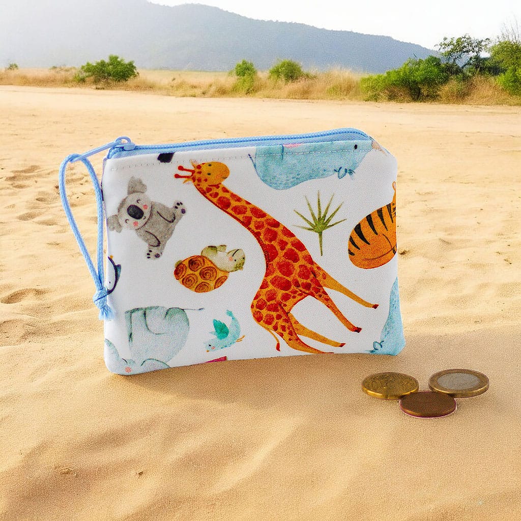 Handgefertigte Kinder Geldbörse aus 100 % Baumwollstoff mit fröhlichem Wildtier-Motiv. Weich, robust und kindgerecht – perfekt für kleine Entdecker und ein schönes Geschenk zu jedem Anlass.
