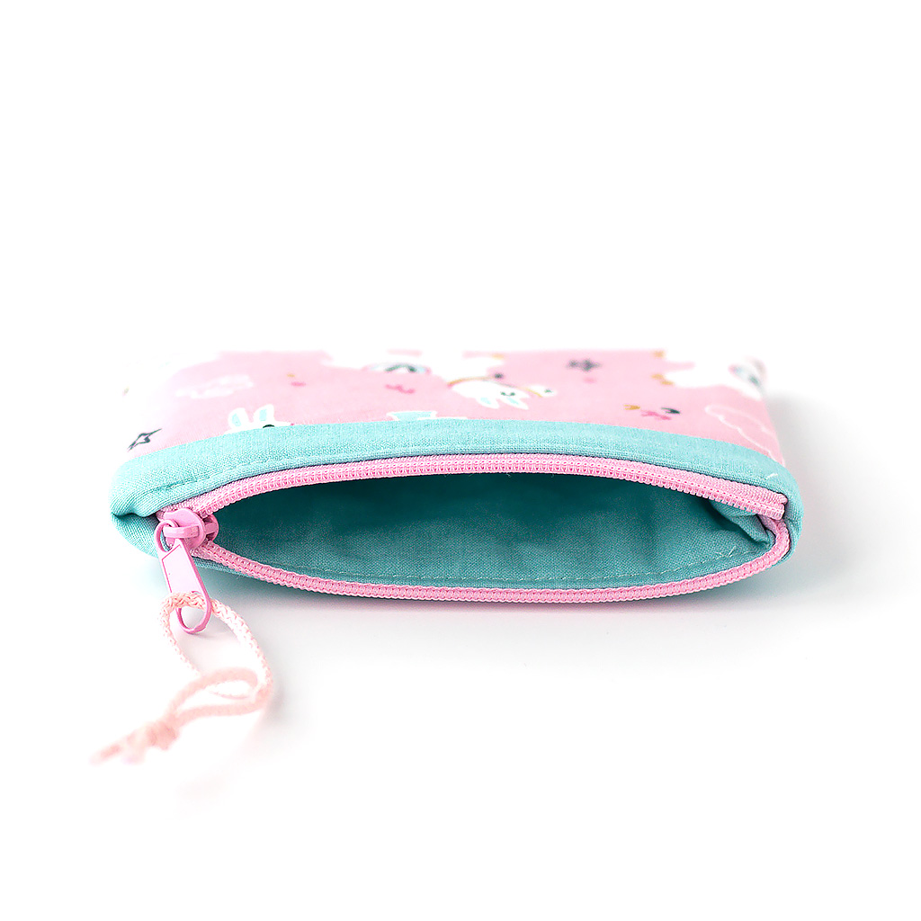 Süße Kindergeldbörse mit fröhlichem Lama-Motiv – aus 100 % Baumwolle gefertigt und mit Reißverschluss versehen. Perfekt für kleine Entdecker, die ihr Taschengeld oder kleine Schätze sicher aufbewahren möchten. Ein liebevolles Accessoire für Alltag, Kindergarten oder Ausflüge.