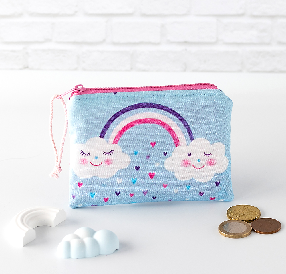 Geldbörse für Kinder mit Regenbogenwolken in zwei Farben