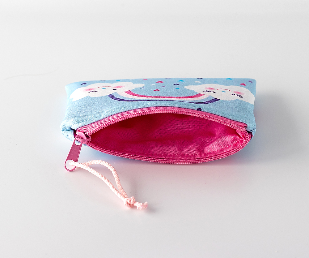 Süße Kinder-Geldbörse mit lächelnden Regenbogenwolken – perfekt für kleine Helden und Feen! Aus 100 % Baumwolle mit weichem Volumenvlies gefertigt. Dank Reißverschluss ist das Taschengeld sicher verstaut. In Blau oder Flieder – ein fröhliches Geschenk für kleine Entdecker!