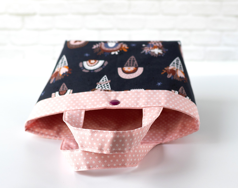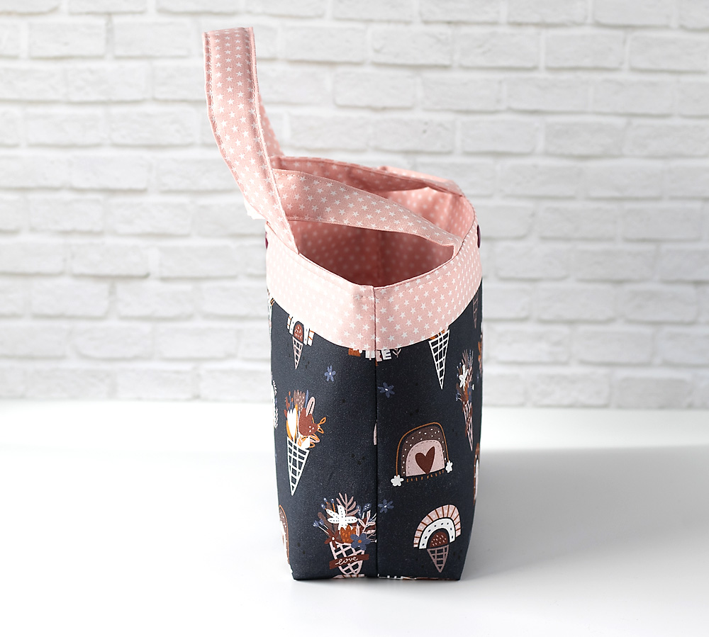 Stoff: Baumwollstoff mit Blumeneis, Futter zart rosa mit kleinen weißen Sternen