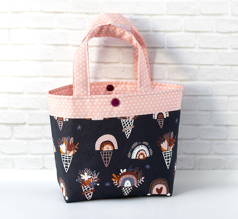 Kleine Kindertasche mit Blumeneis-Motiv – perfekt für Einkäufe, Kindergarten oder Spielbesuche. Gepolstert und stabil, ideal für kleine Entdecker.