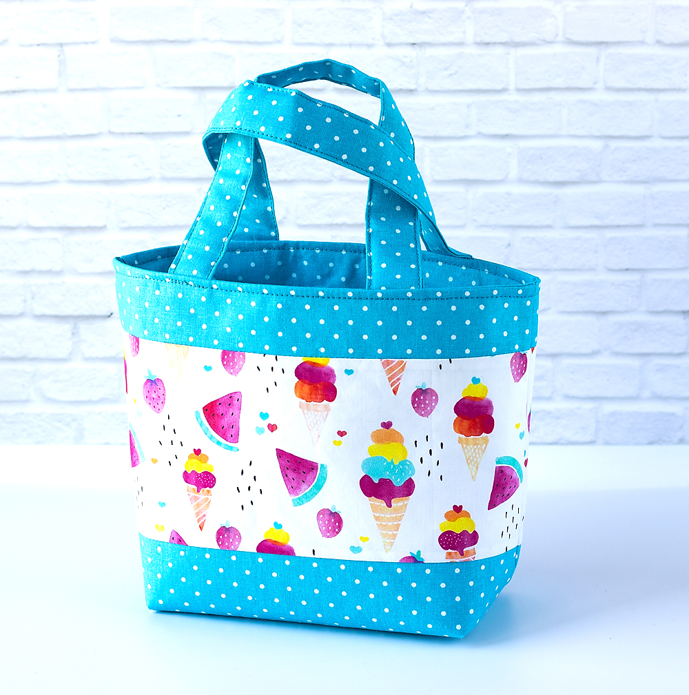 Mit dieser entzückenden Kindertasche macht jeder Ausflug gleich doppelt so viel Spaß! Die Tasche ist aus Baumwollstoff gefertigt und verfügt über zwei bequeme Tragegriffe, die perfekt für kleine Kinderhände sind. Das fröhliche Design mit Eishörnchen und Melonen zaubert jedem Kind ein Lächeln aufs Gesicht.