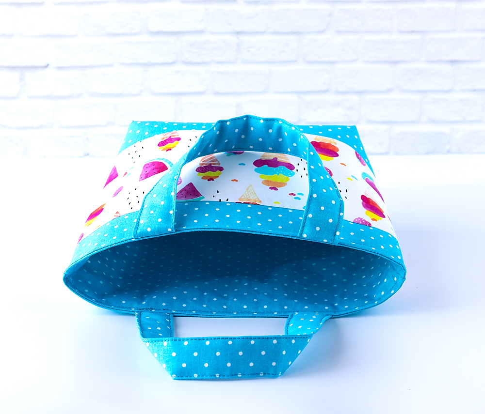 Fröhliche Kindertasche aus Baumwolle mit Eishörnchen- und Melonenmotiv – perfekt für kleine Abenteuer, Ausflüge oder den Kindergarten.