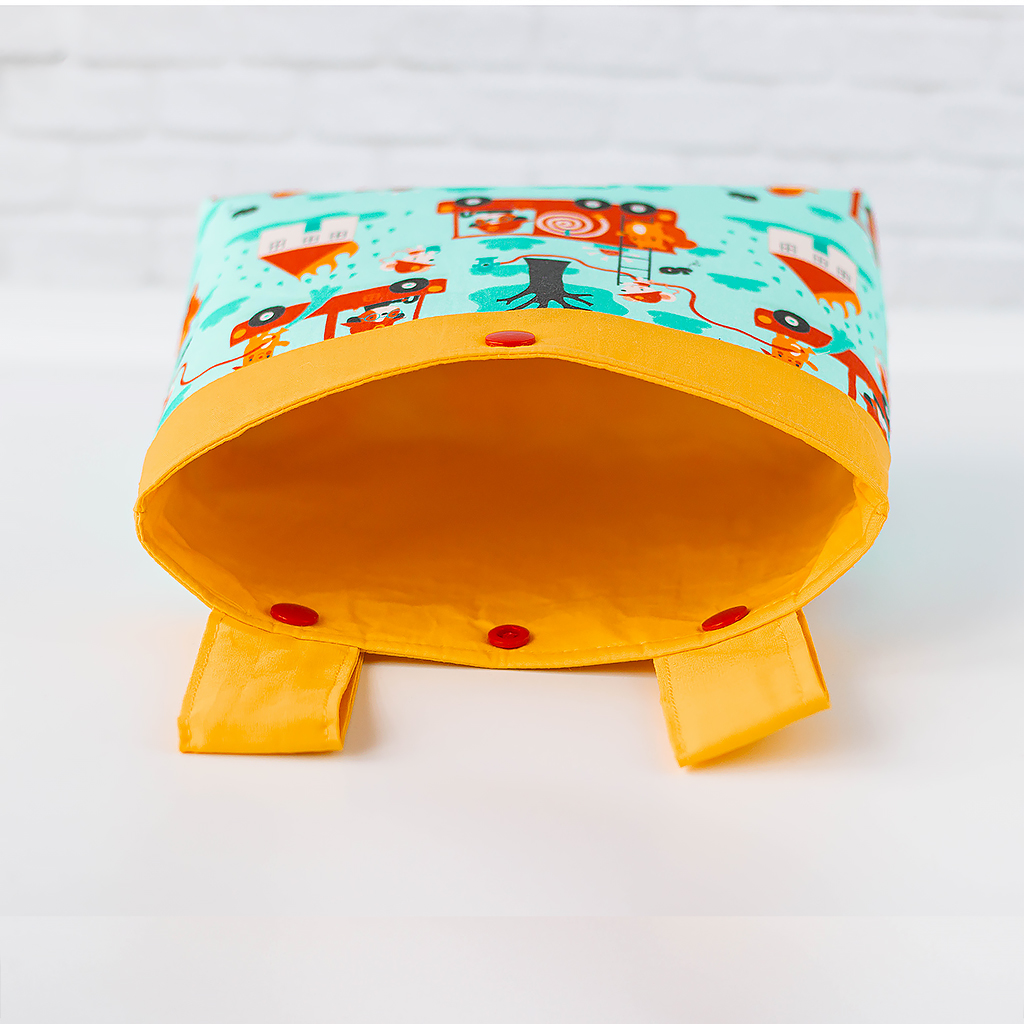 Stoff: Außenstoff: mit Hundefeuerwehr auf grünem Hintergrund, Innenstoff: gelb