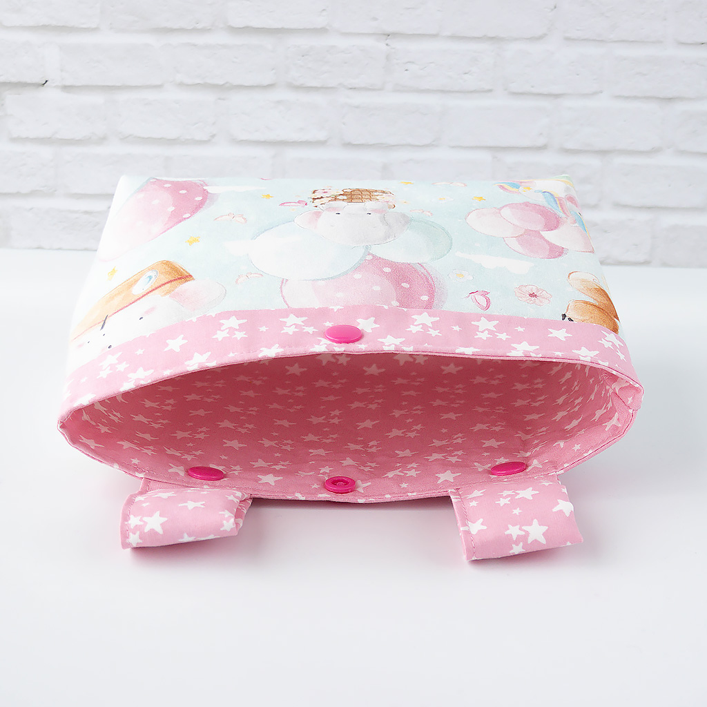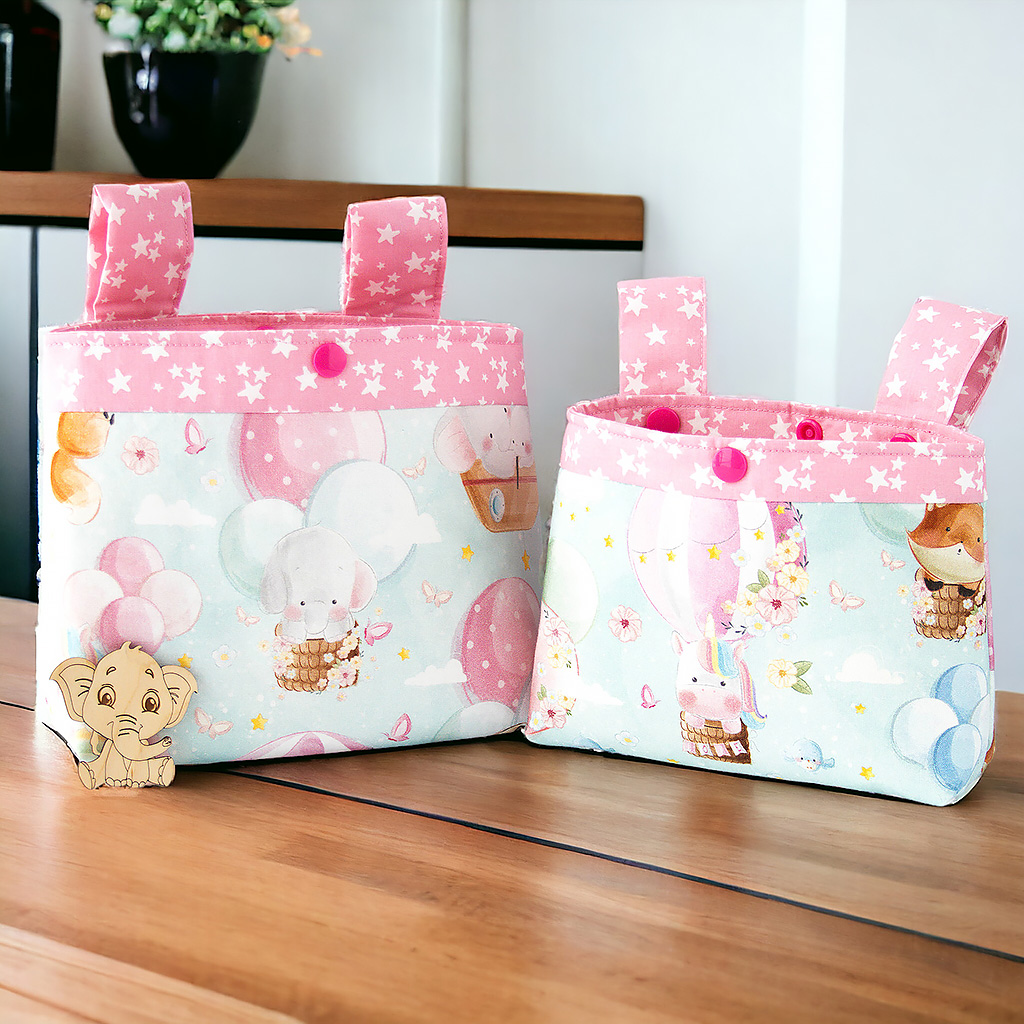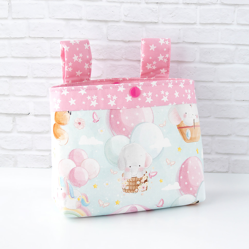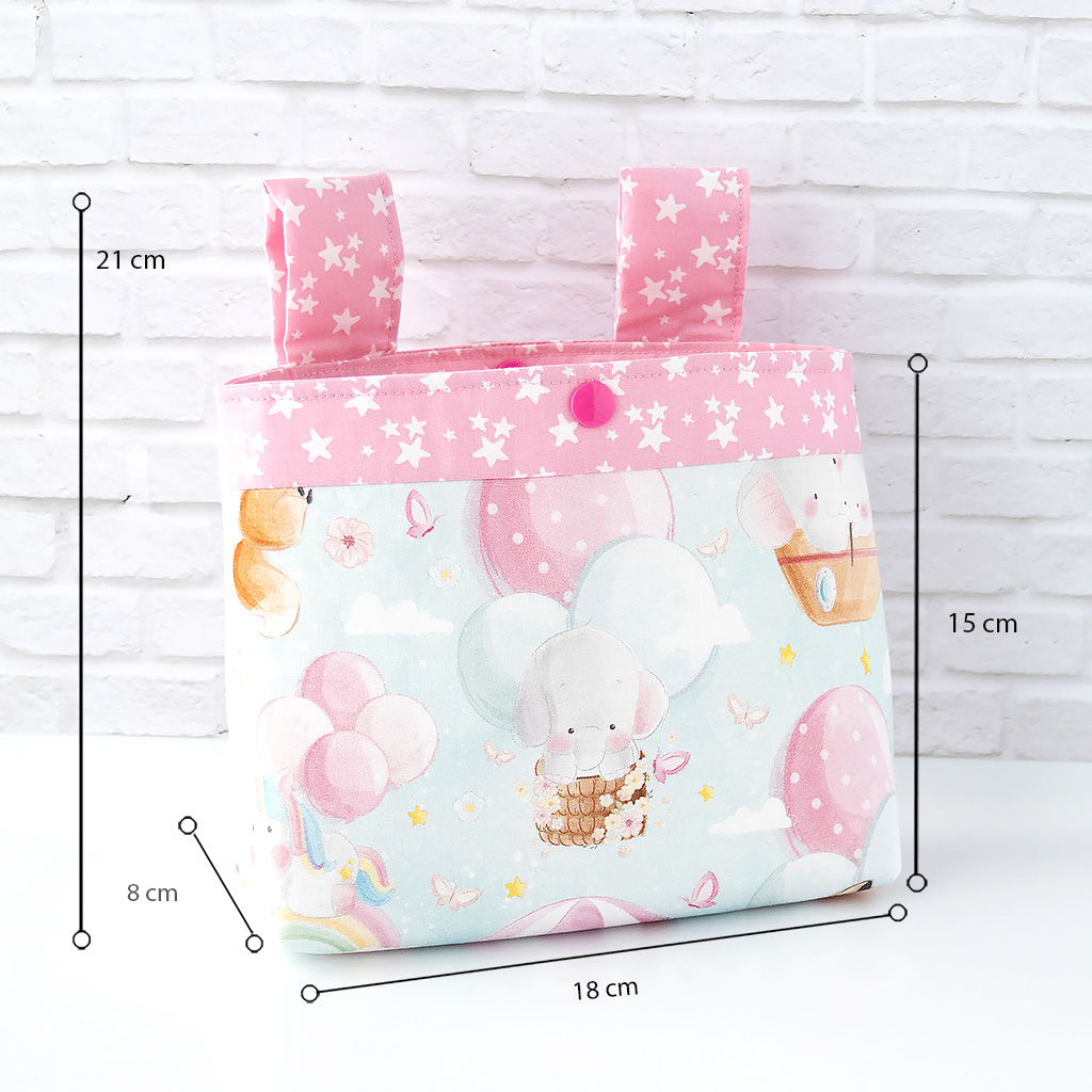 Fröhliche Farben für kleine Entdecker: Diese stabile Lenkertasche aus Baumwolle mit bunten Ballontieren begleitet Ihr Kind auf jeder Fahrt. Geräumig, formstabil und verstellbar – passend für Laufrad, Roller, Fahrrad oder sogar am Bettgitter.