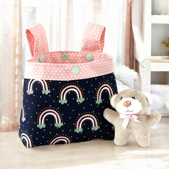 Aparte Regenbögen zeigen sich auf dieser Lenkertasche aus Baumwolle. Sie ist passend für Laufrad, Roller oder Fahrrad. Praktisch, flexibel befestigbar und ideal für kleine Schätze unterwegs.