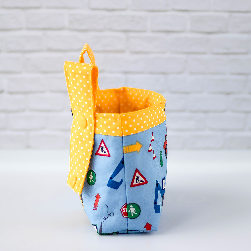 - Außenstoff: mit Baufahrzeugen auf blauem Hintergrund