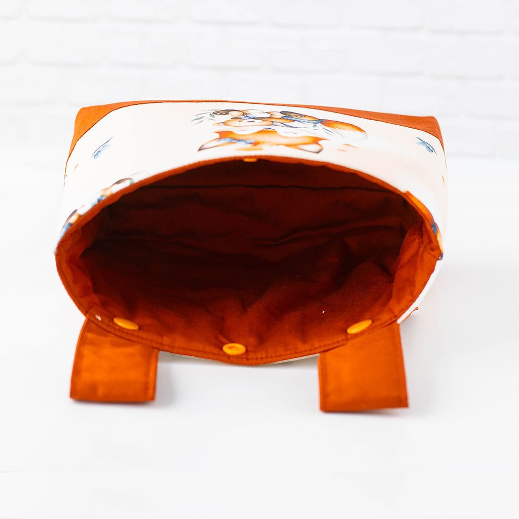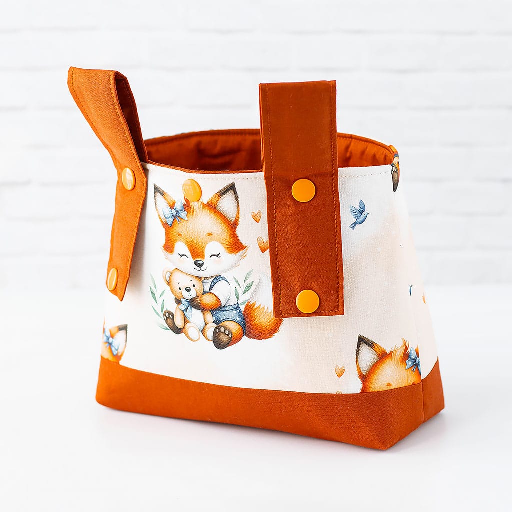 Warme Rosttöne, ein sanfter Fuchs mit Teddybär und eine stabile Verarbeitung machen diese handgefertigte Lenkertasche zu einem praktischen Begleiter für kleine Fahrradabenteuer. Die Befestigung am Lenker ist unkompliziert: Die stabilen Bänder werden einfach geschlossen und halten sicher an Laufrad, Dreirad oder Kinderfahrrad.