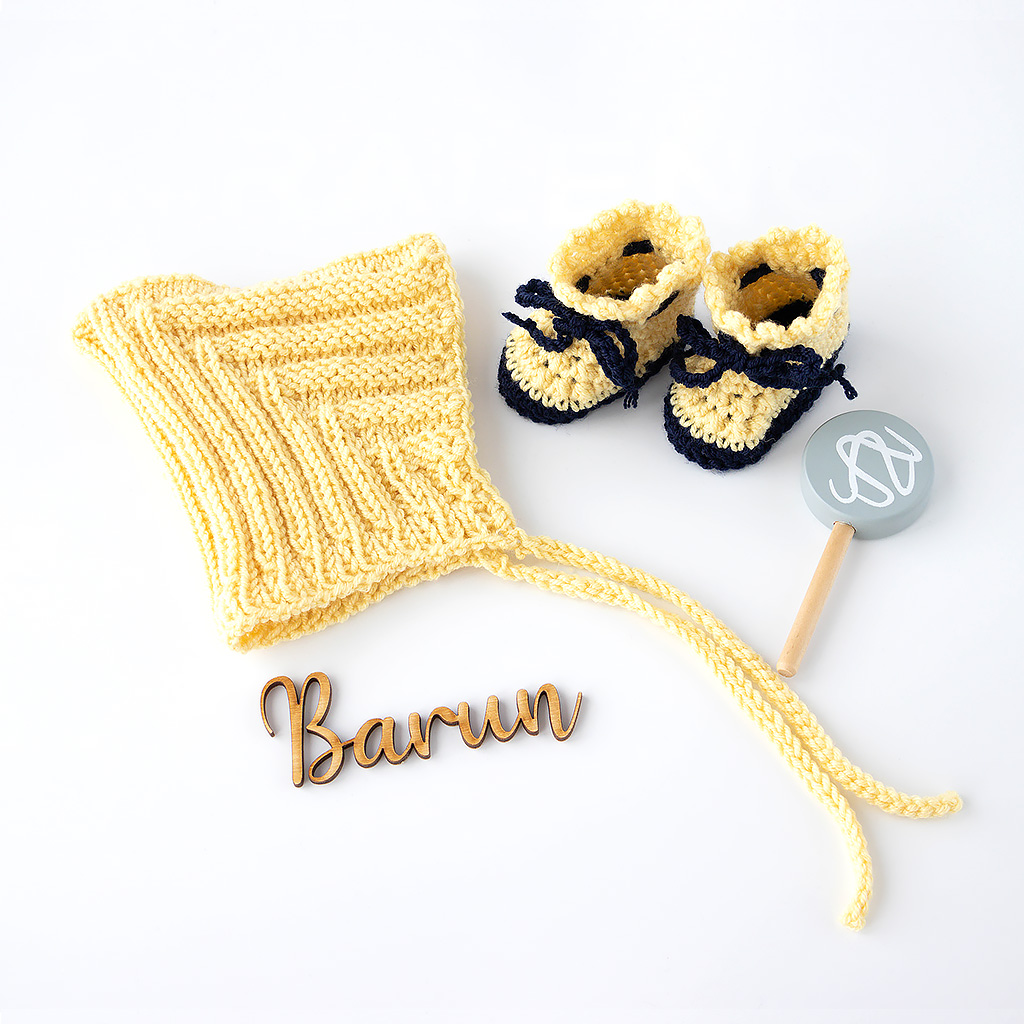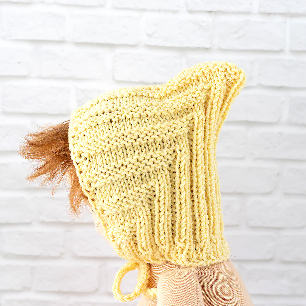 Diese handgestrickte Pixiemütze mit passenden Schuhen aus reiner Merinowolle bringt Wärme und Farbe in die kleine Puppengarderobe. Erhältlich in leuchtendem Gelb mit dunkelblauen Details oder in Beerenton mit weißen Akzenten wird jedes Set zu einem besonderen Blickfang.