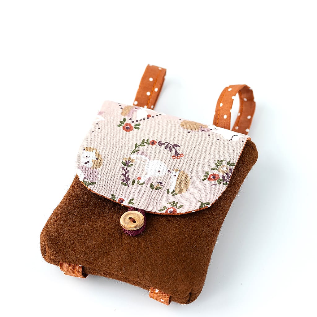 Kleiner handgefertigter Rucksack für Waldorfpuppen – liebevoll aus Wollfilz und Baumwollstoff genäht. Der Holzknopf-Verschluss hält kleine „Schätze“ sicher verstaut, und die verschiedenen Motive wie Hase und Igel regen die Fantasie beim Spielen an. Ein besonderes Puppenzubehör, das jedes Spiel lebendiger macht.