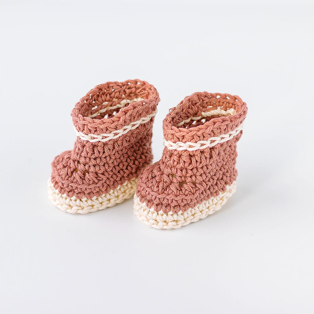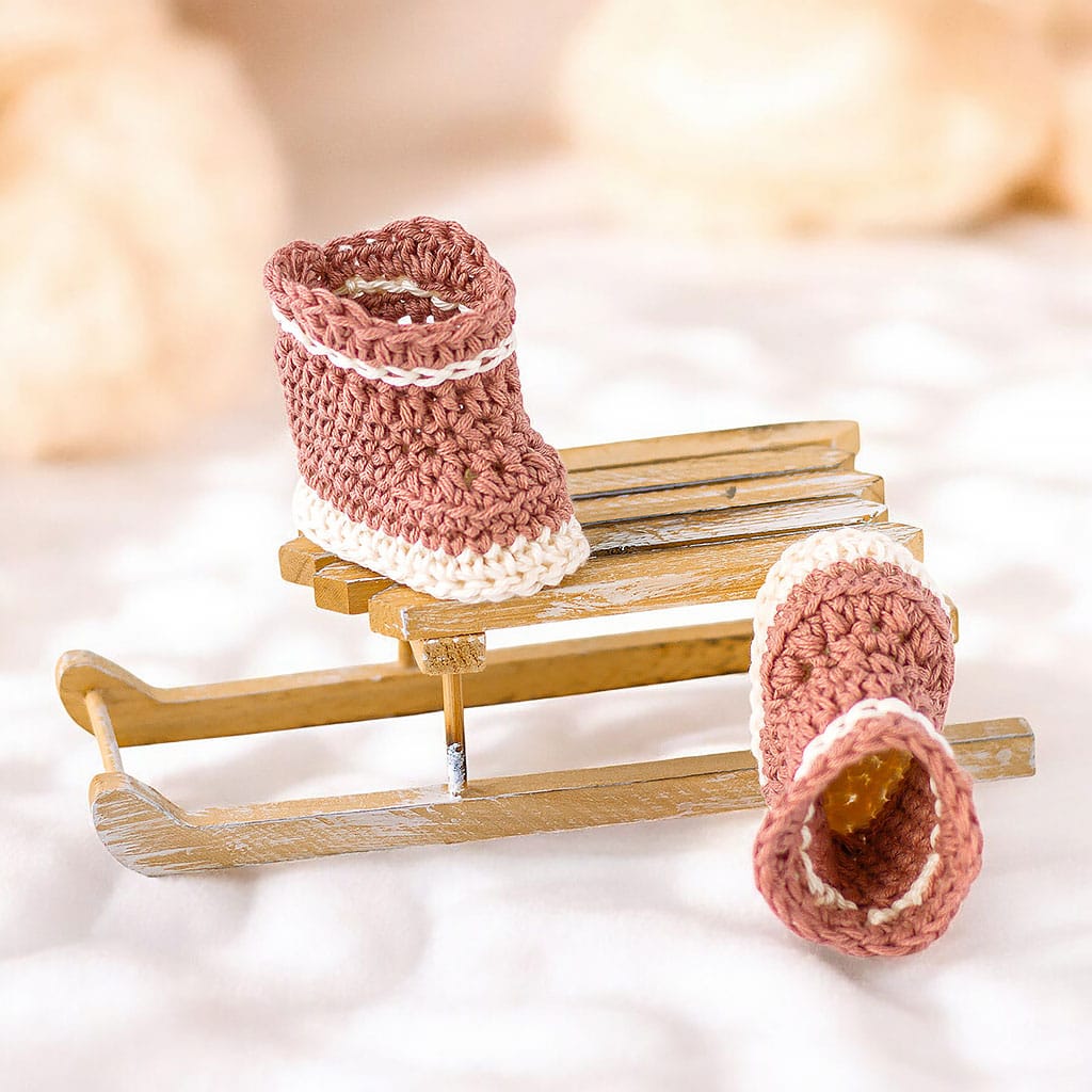 Handgehäkelte Puppenstiefel aus Baumwolle für Waldorfpuppen – schlicht, hochwertig und ideal für ein natürliches Puppenspiel.