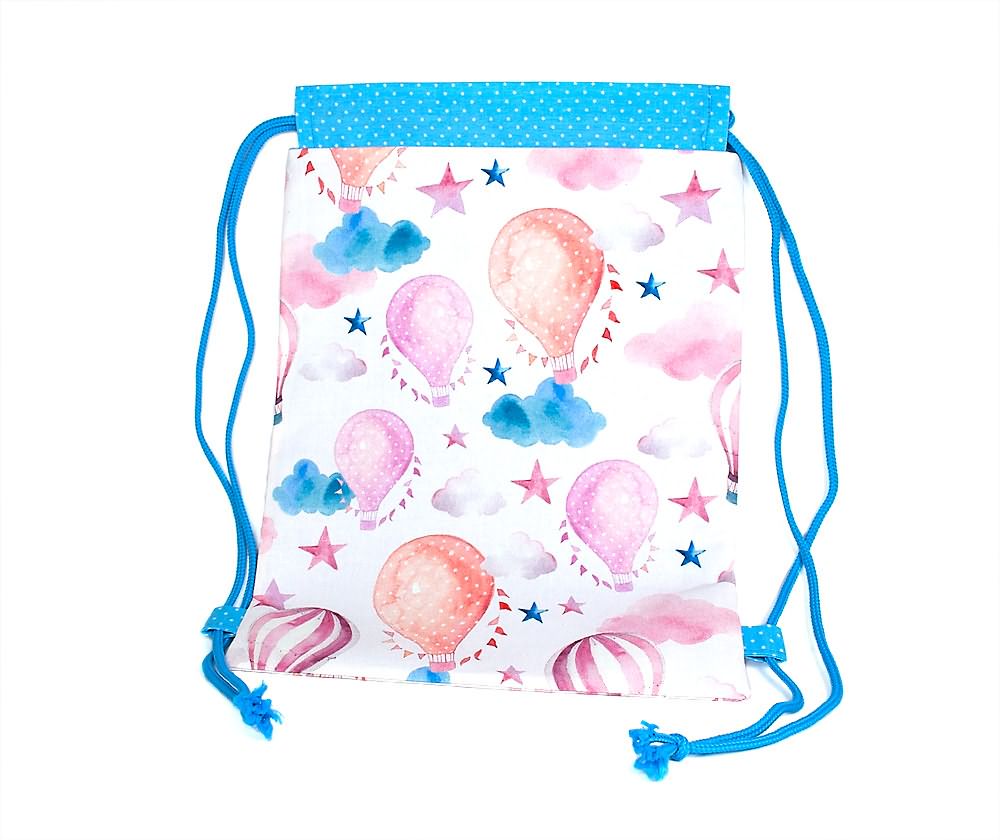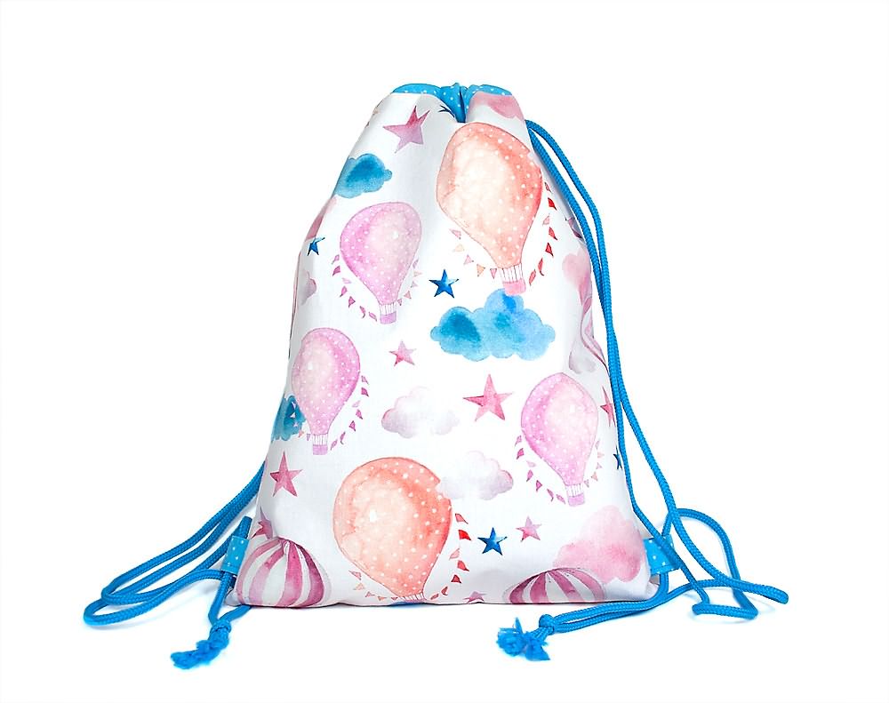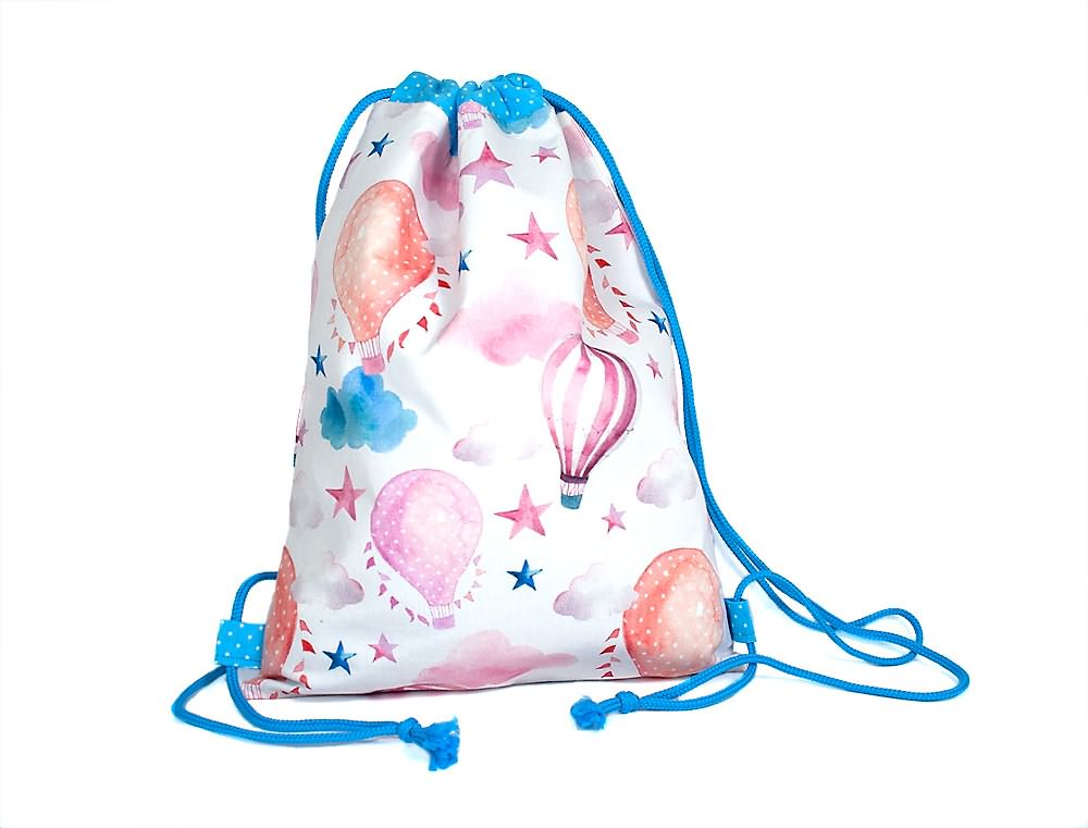 Farbenfroher Kinder-Turnbeutel mit Heißluftballons – robust, gefüttert und perfekt für Kindergarten, Spielzeug oder kleine Ausflüge.
